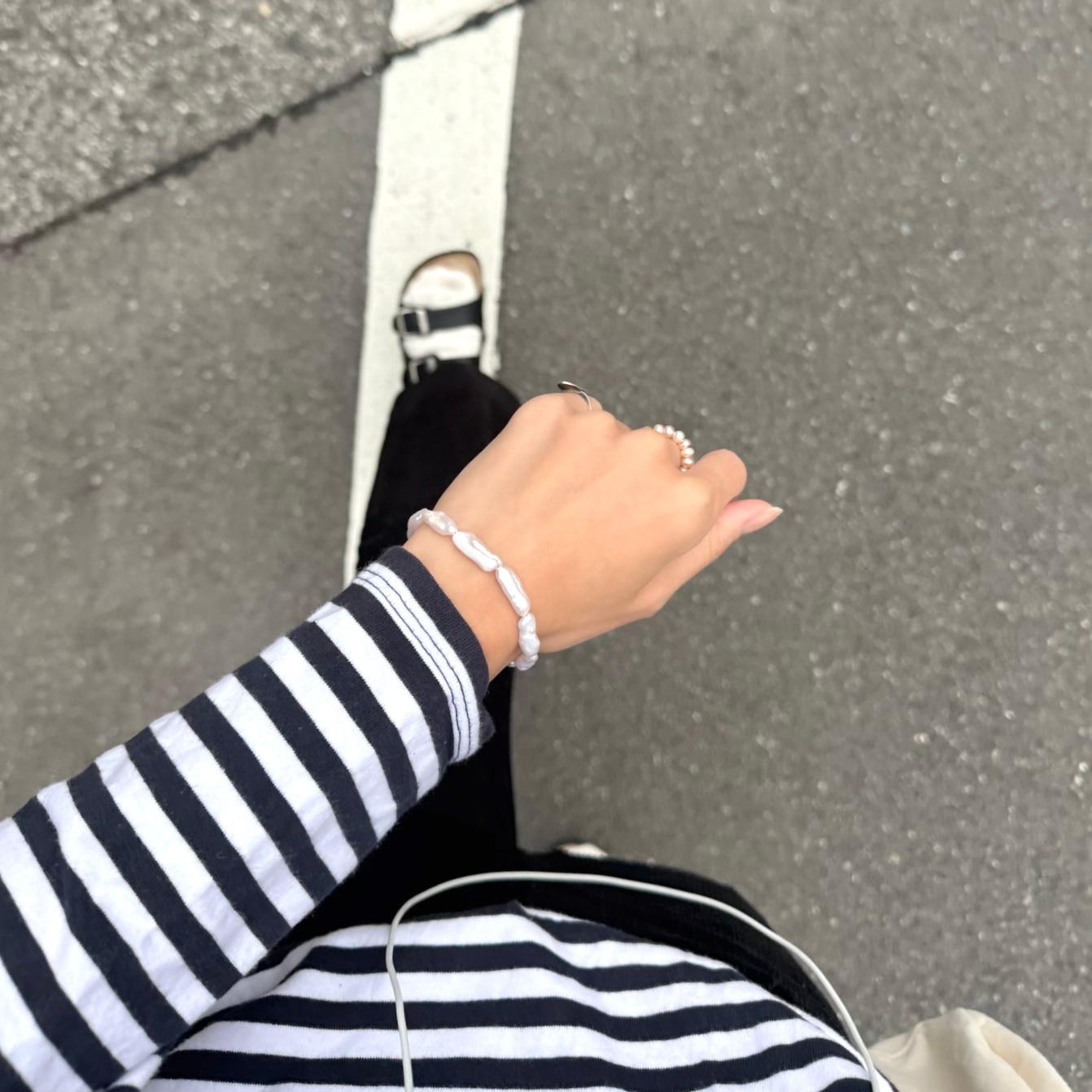ドットを彷彿とさせるパールとブラックコードはしなやかで、コットンコードと相まってナチュラルな雰囲気を楽しめます。