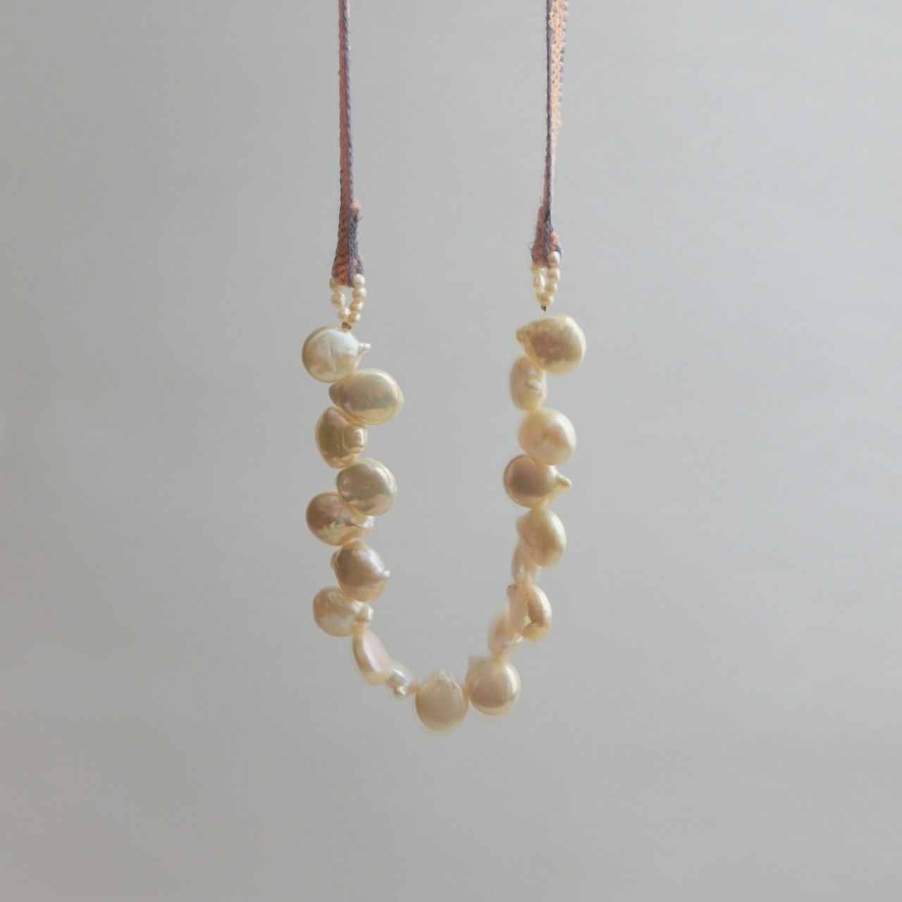 【 Materials 】nylon cord, freshwater pearls, and gold plated parts