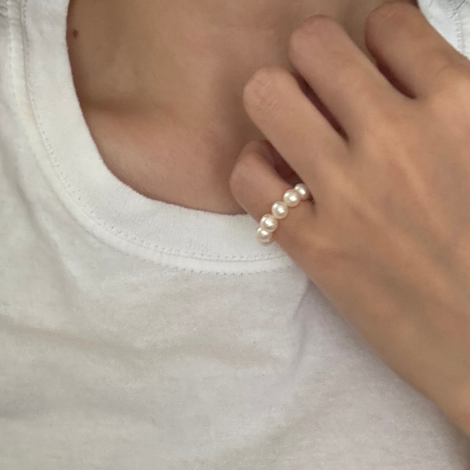 シンプルだけど目を引く、存在感のある淡水パールリングです。