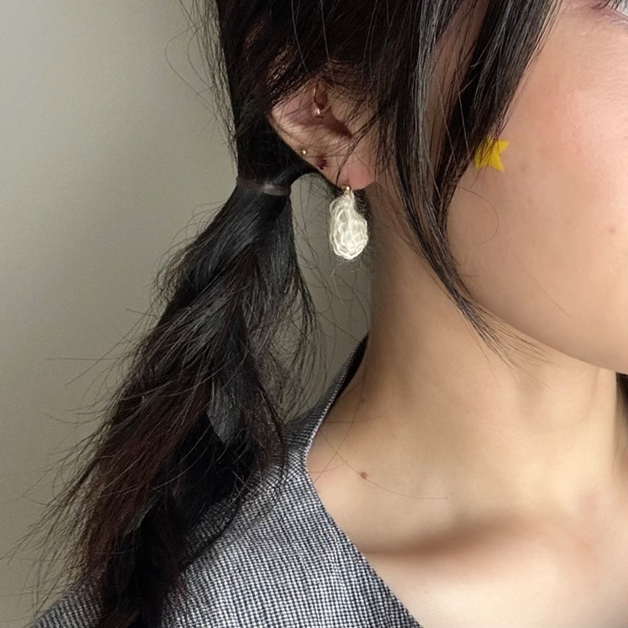 淡水パールをモヘア糸で包み込んだ一粒ピアス。