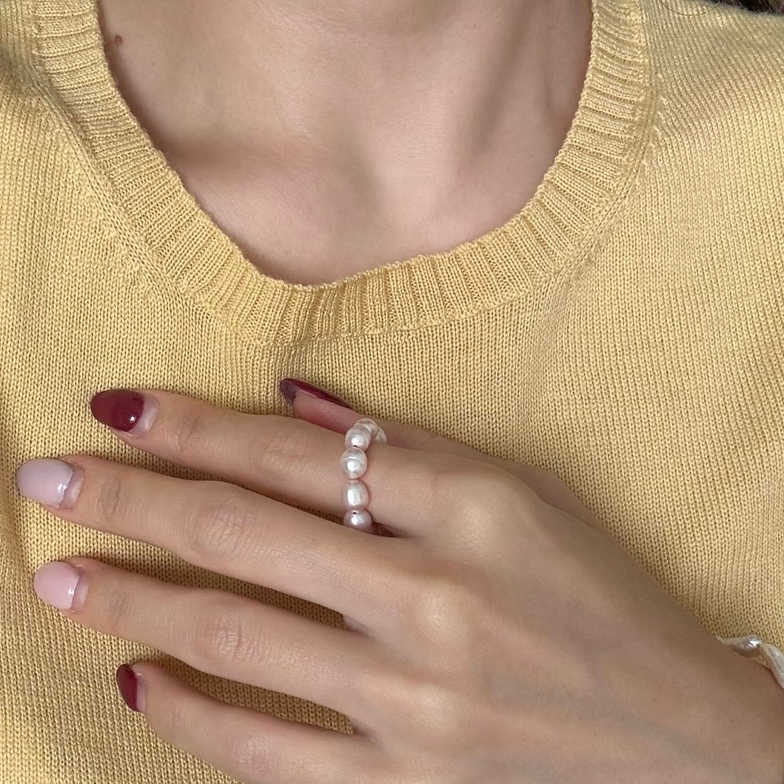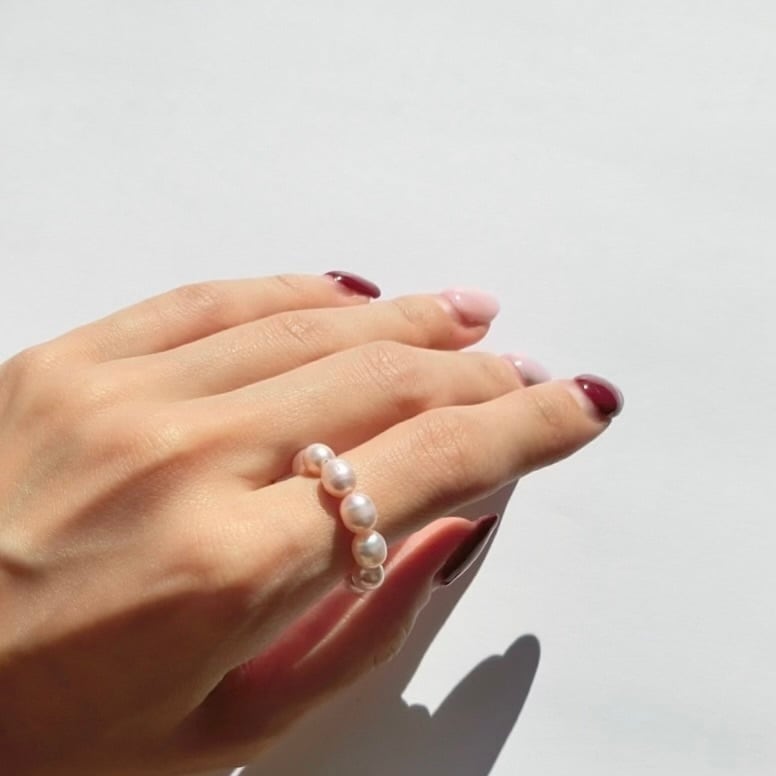 優しくもテリが美しいピンクパールが、指先に主役級のオーラを放ちます。