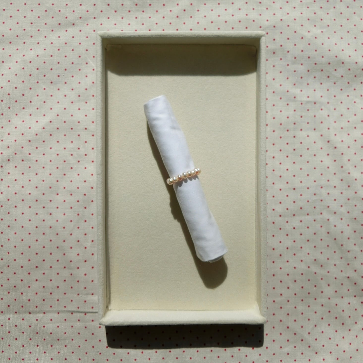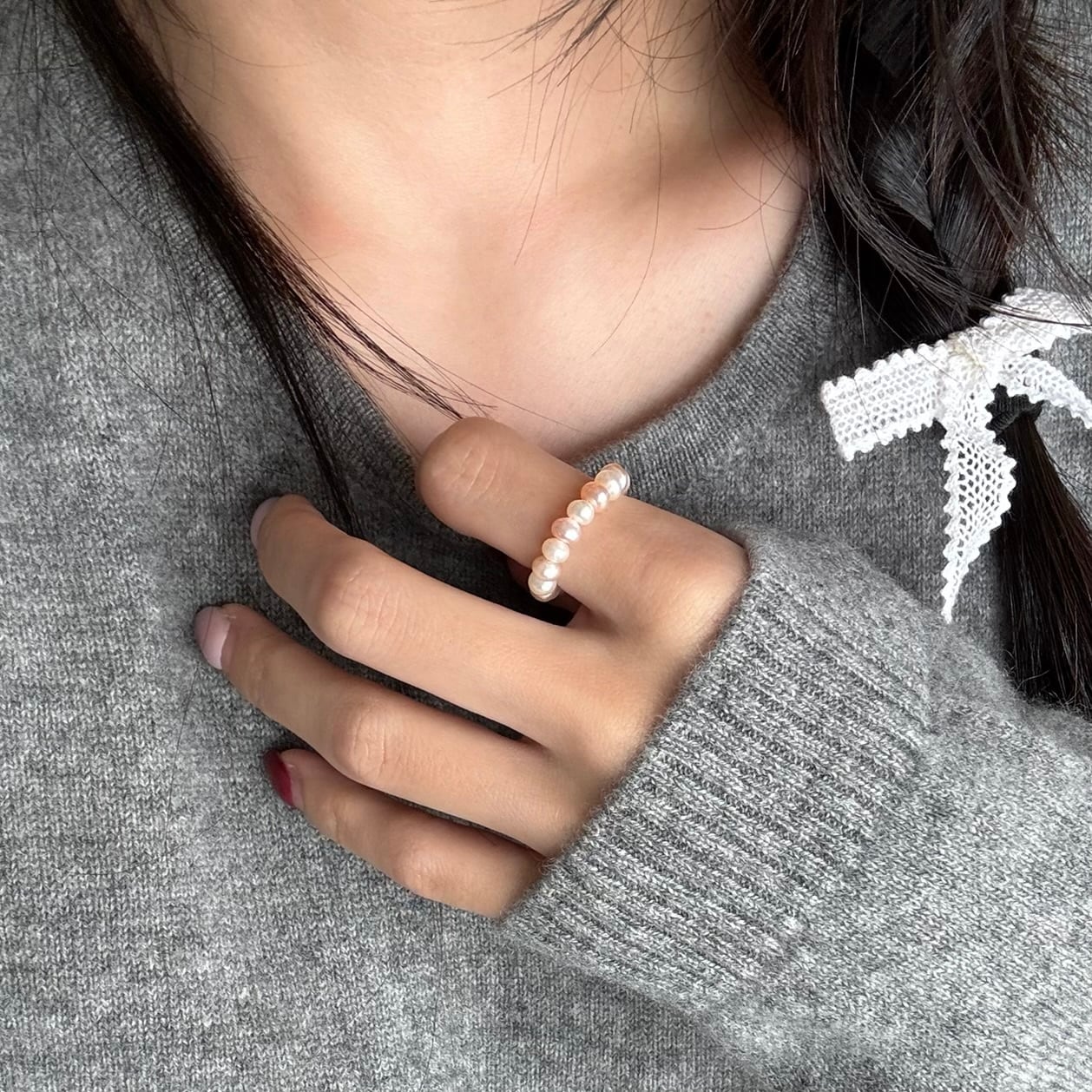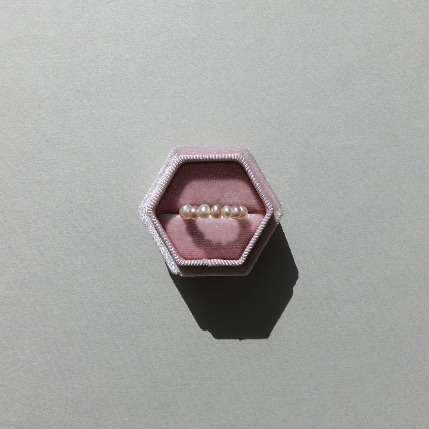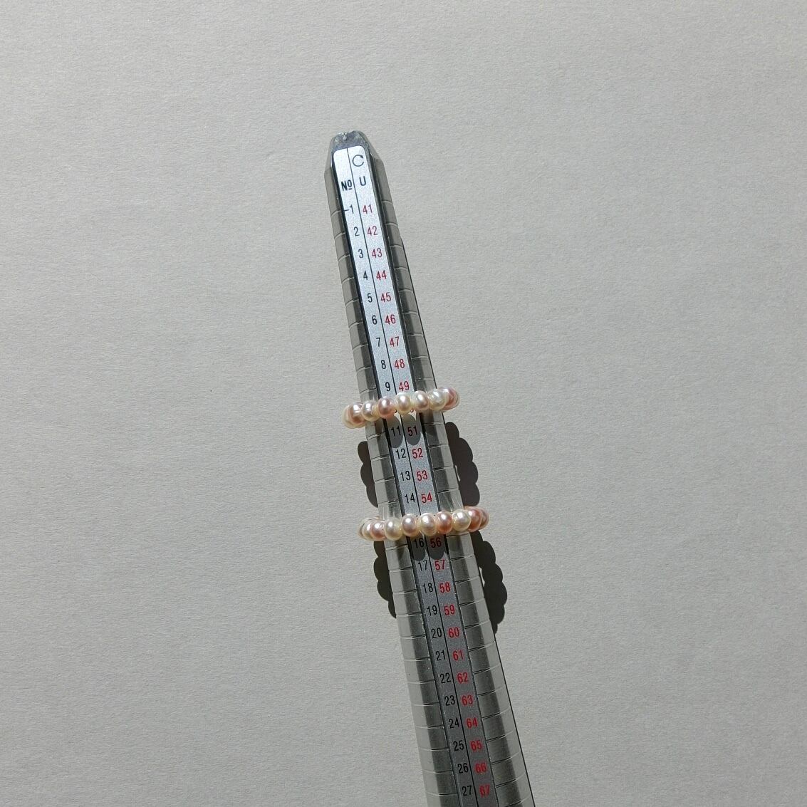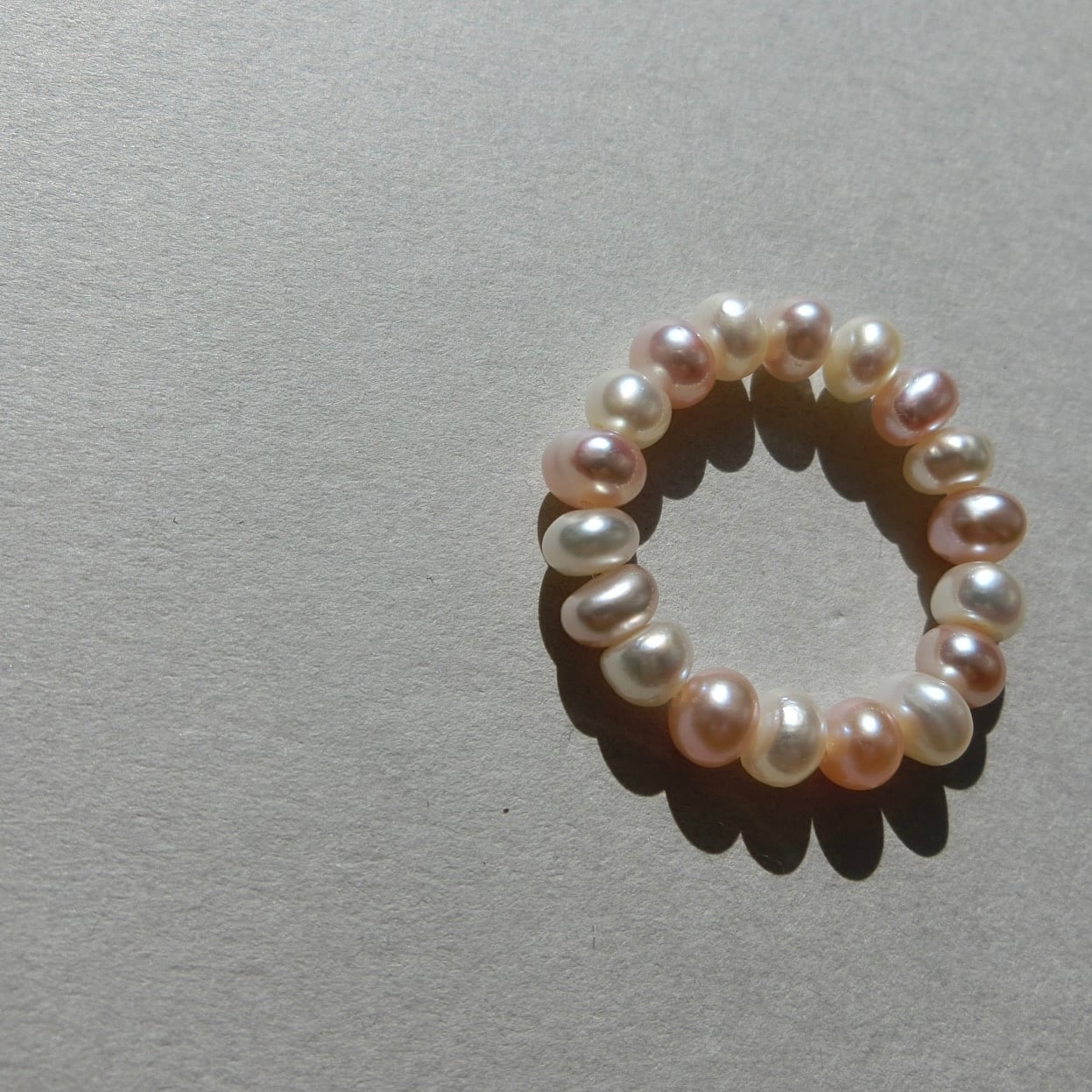 ホワイトとピンク2種類の、淡水ボタンパールリング。