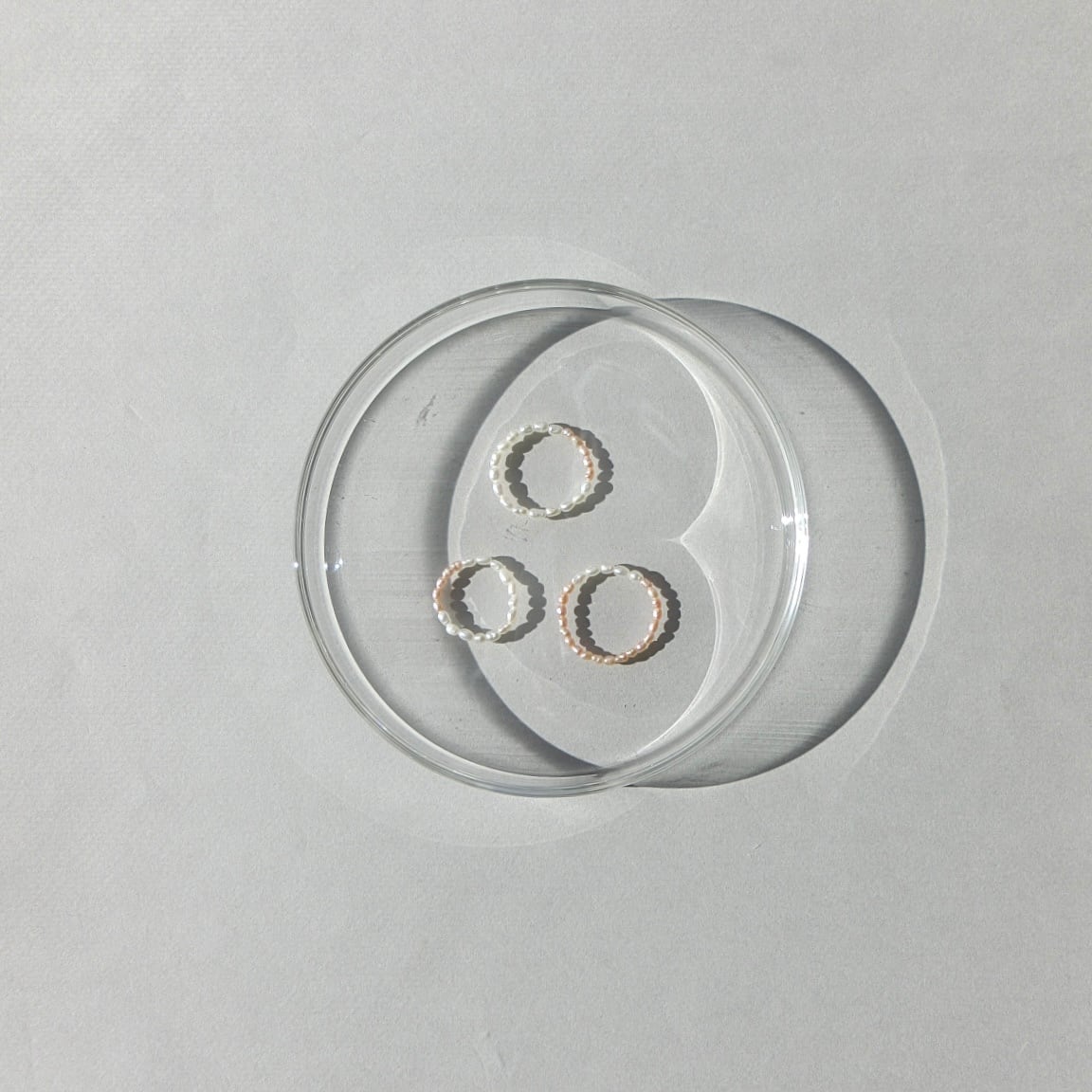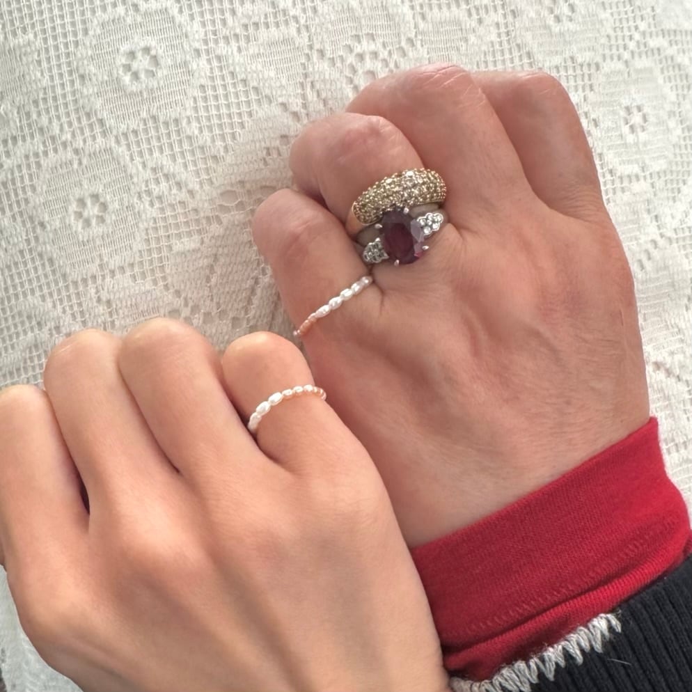 大切な恋人や家族、友だちと一緒に身に着けたい、淡水ベビーパールのペアリングセット。