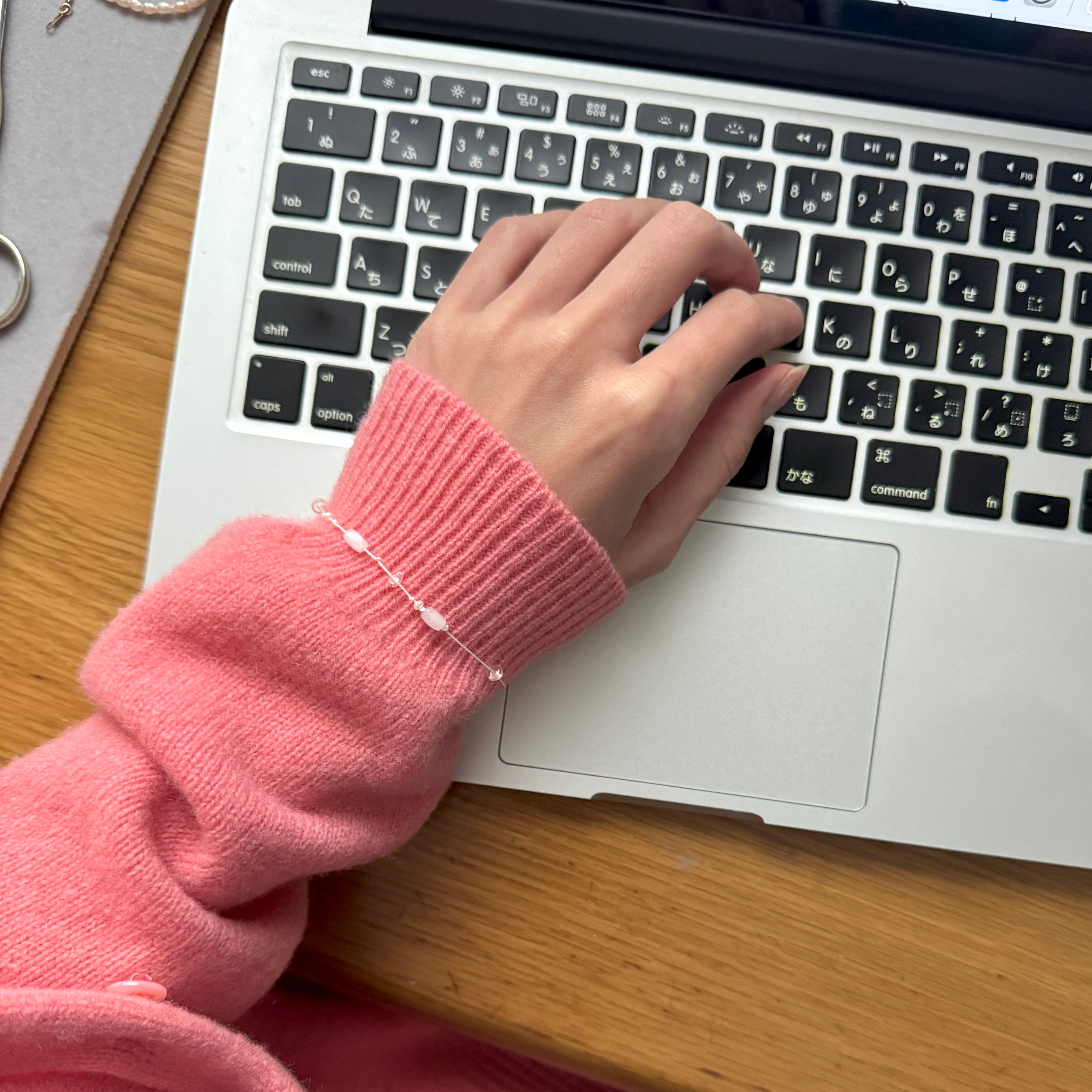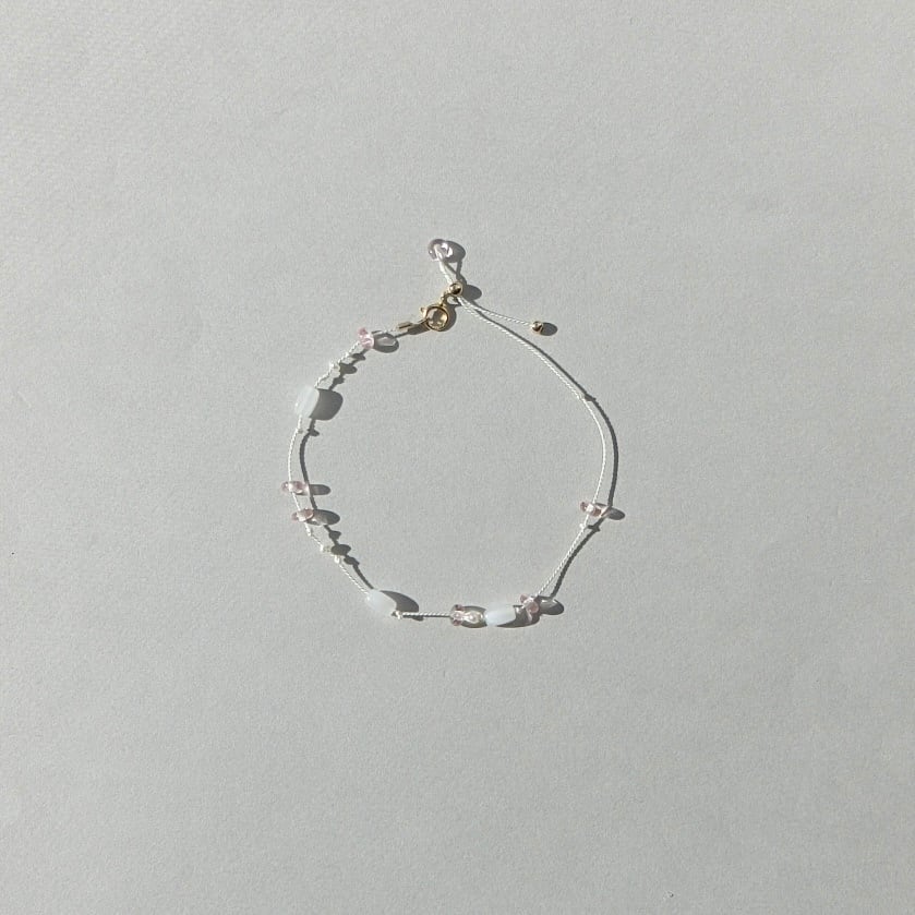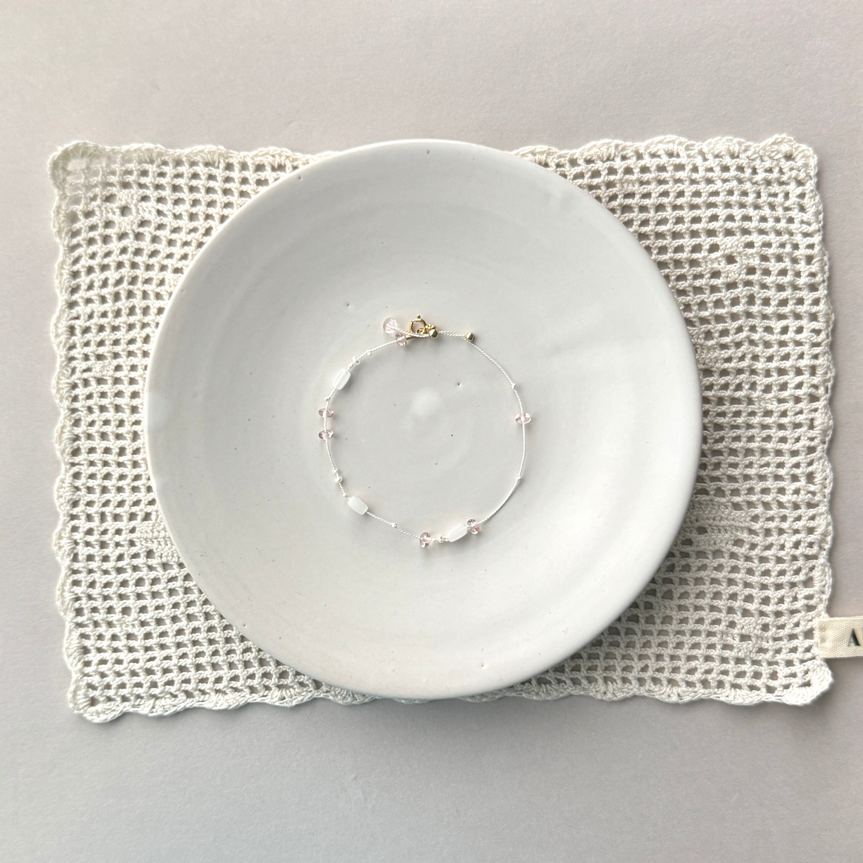 手首を優しく包み込むデザインは、ミサンガのようにサラッとお使いいただける、ストレスフリーな心地良さです。