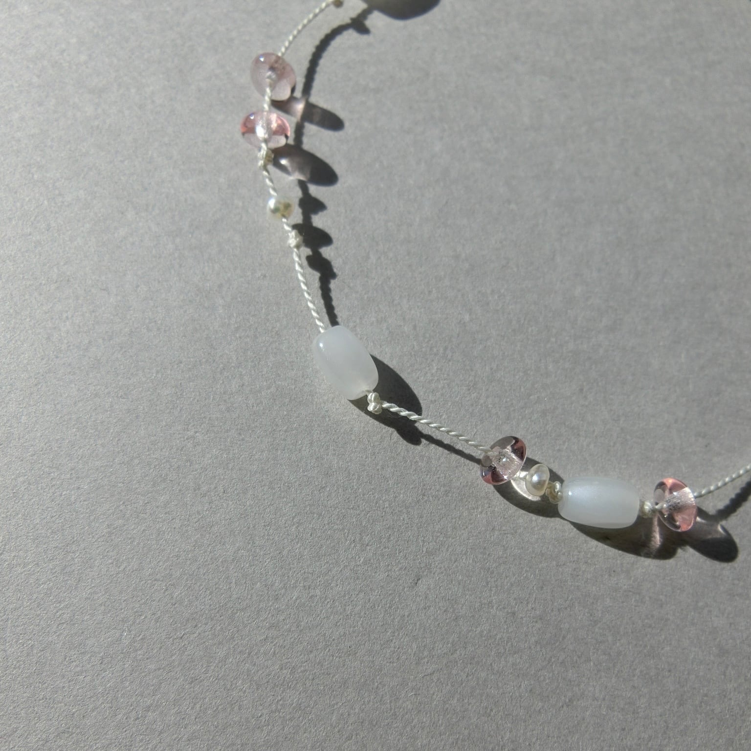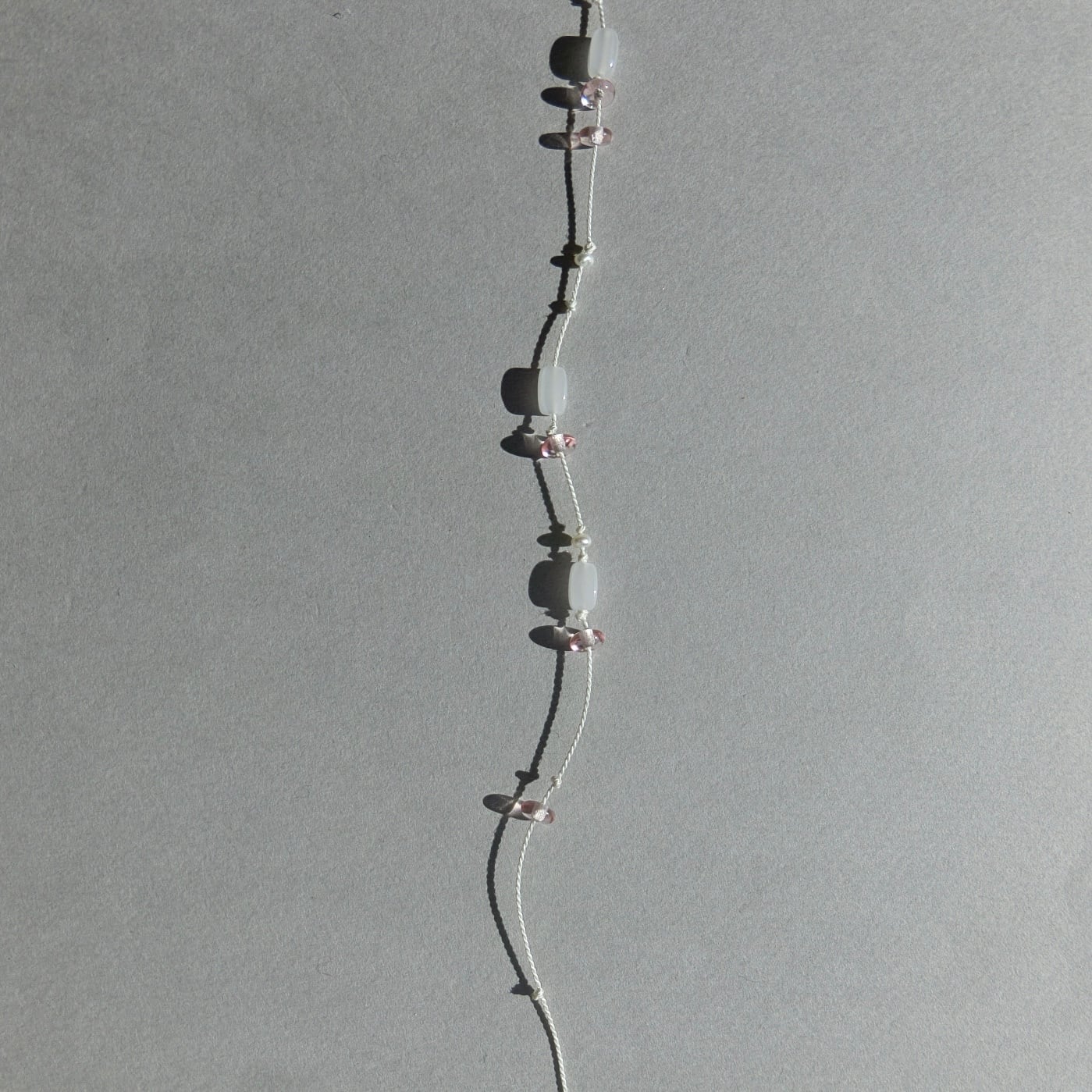 Silk cord bracelet with pearl and czech beads.