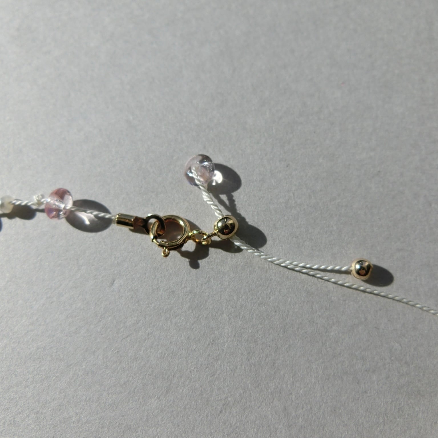【 Golden Hour 】 チェコビーズと淡水ベビーパールの調節可能14kgfホワイトシルクコードブレスレット