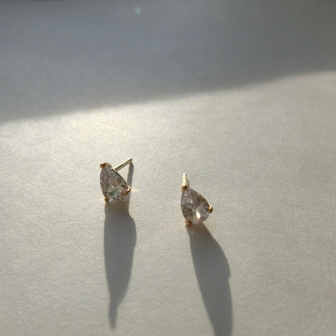 涙や雫を彷彿とさせる繊細なデザインで透明感が美しくナチュラルな雰囲気でON/OFFを問わないスタッドピアス。