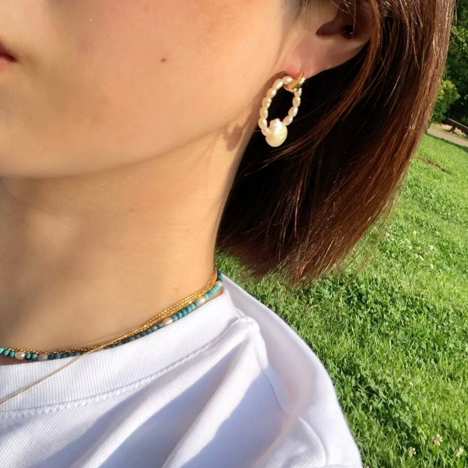 パール部分を取り外しゴールドフープだけでも楽しめるデザインで、シーンごとに使い分けられる優秀な2wayピアスです。