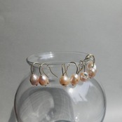 規格外で使用できないくぼみや傷などがある淡水パールをアップサイクルし、シェルの輝きを添えた淡水パールフックピアス。