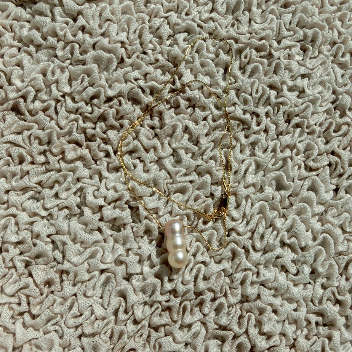 珍しい3つ子の淡水パールの存在感が煌る、ゴールドチェーンネックレス。