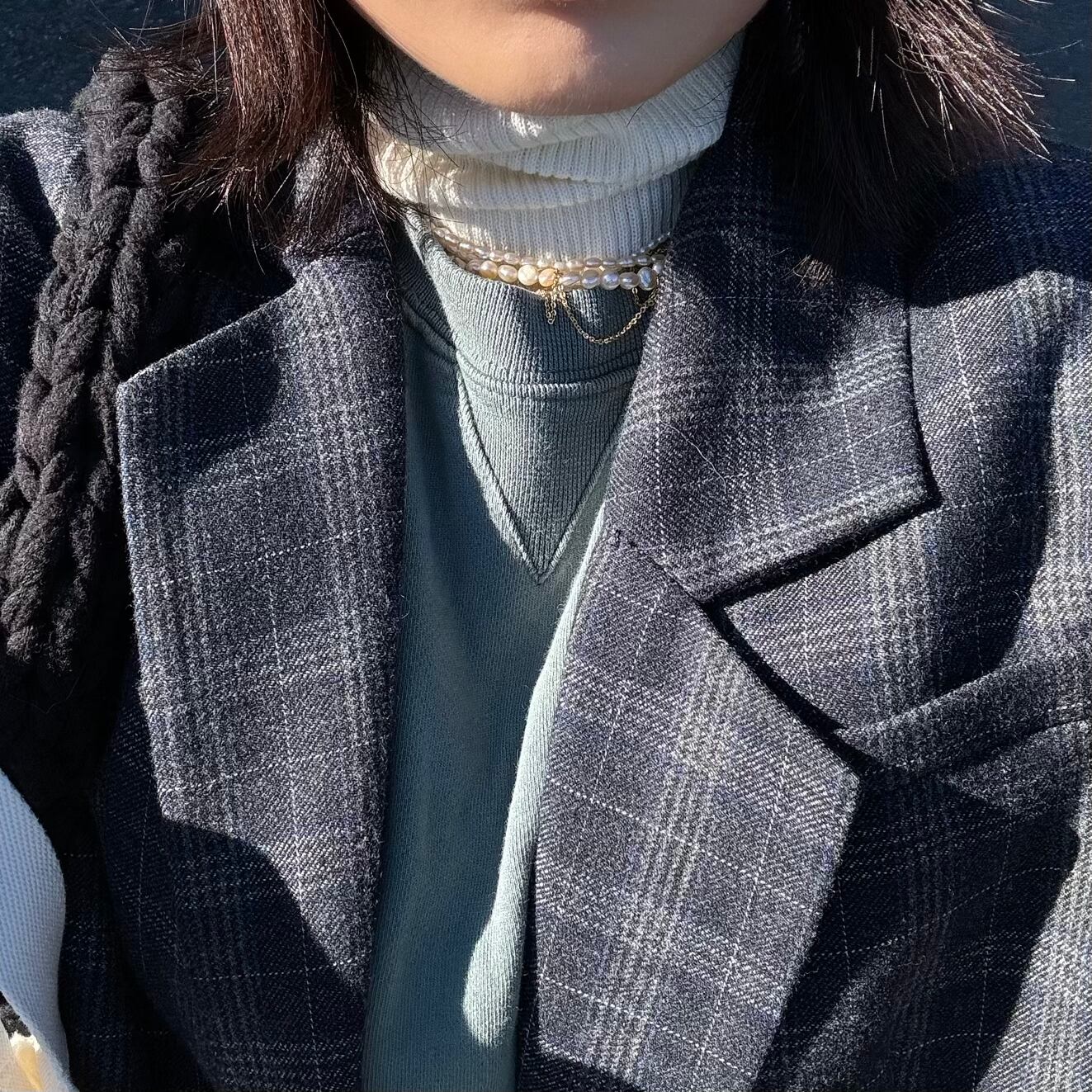 上品なテリがありながらもカジュアルに着けられるバロックパールと存在感のあるチェーンは相性抜群。
