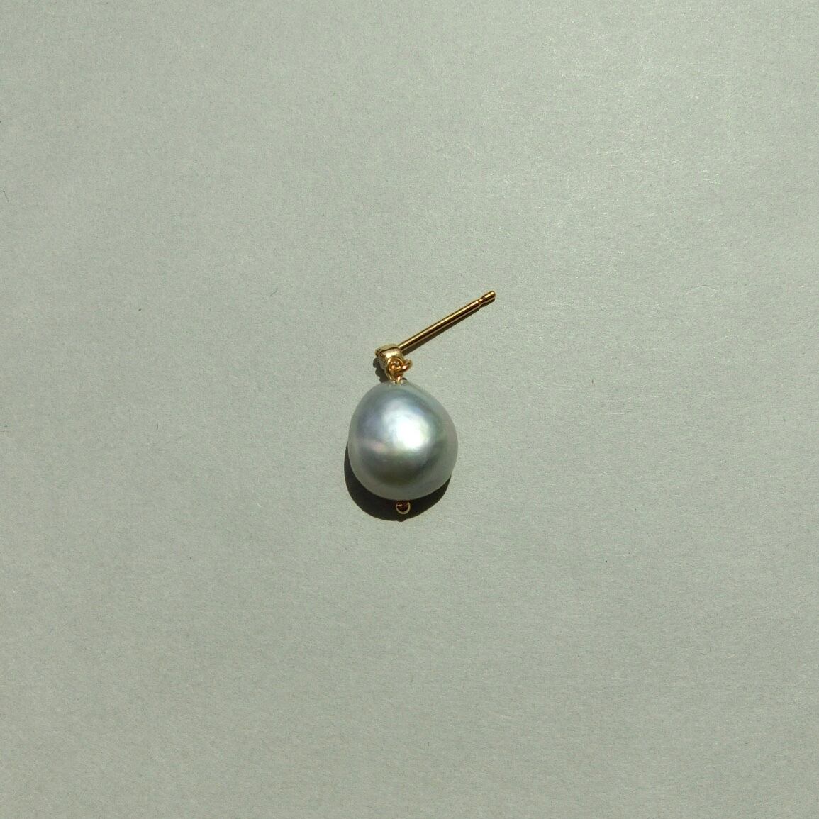 ブルーグレーのバロックパールのジルコニア付きピアス。