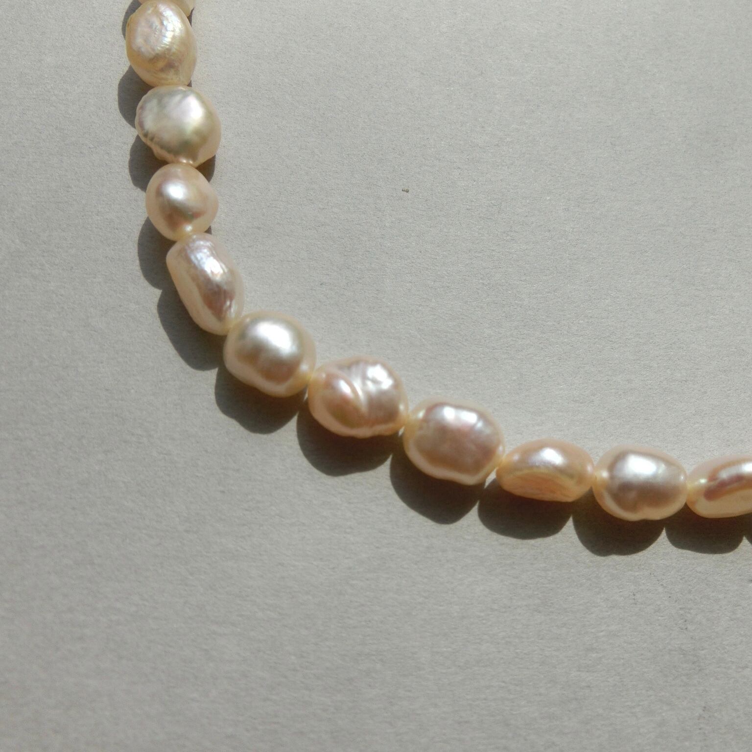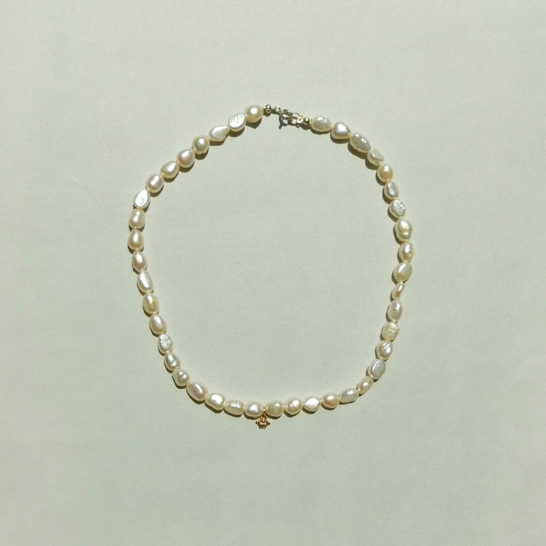 蜂のチャームがワンポイントのバロックパールの一連ネックレス。