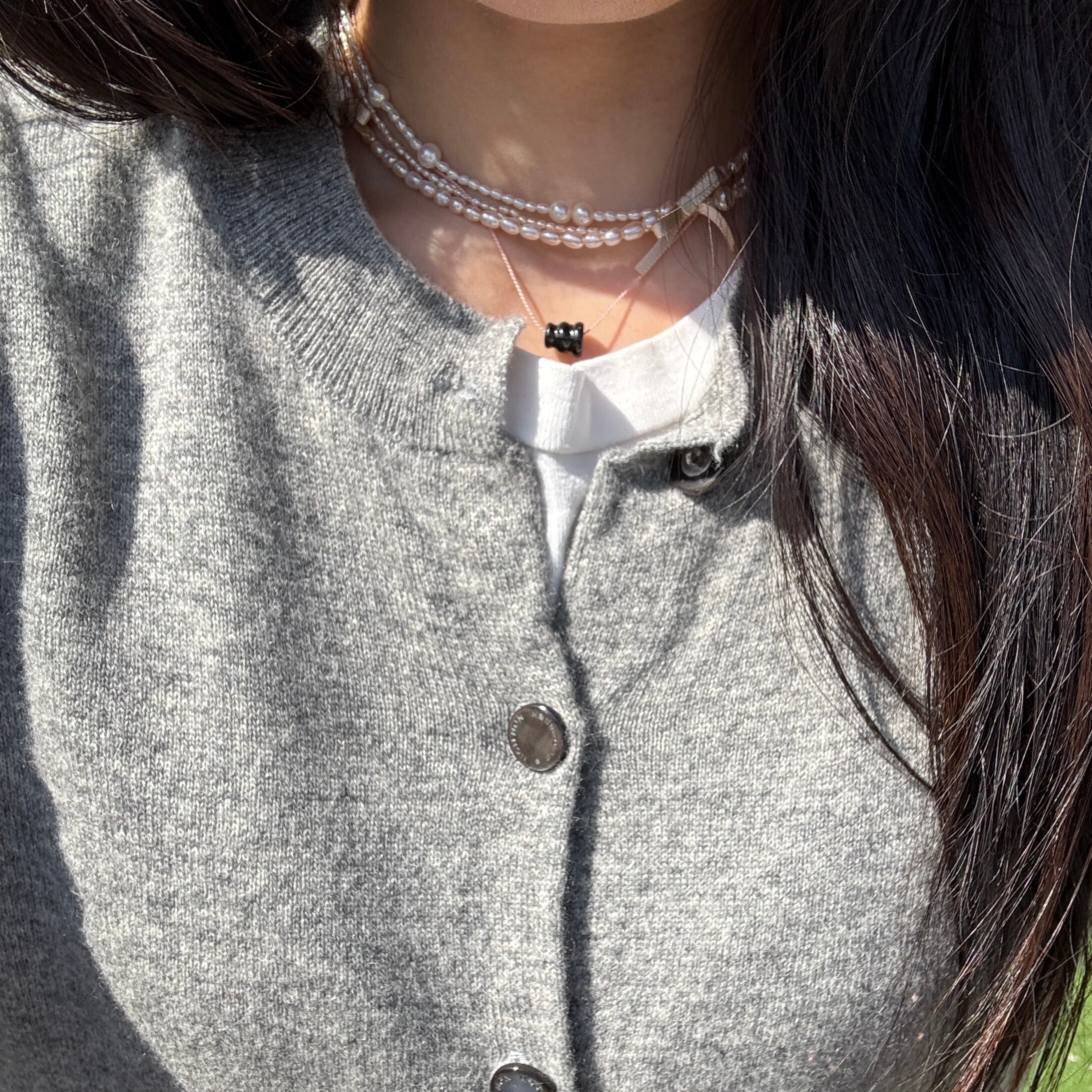 【 Peace 】ベージュサテンリボン付き14kgf淡水パールネックレス