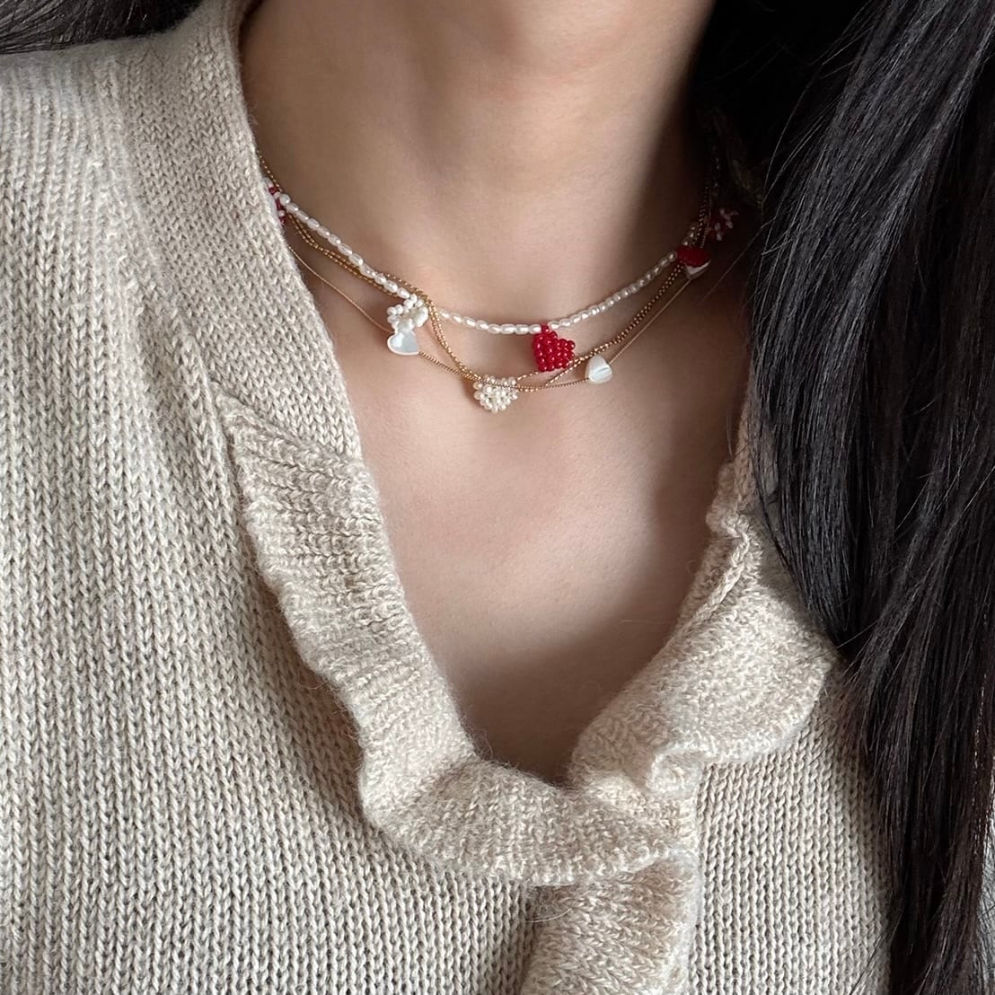 【 Lover 】ハート型マザーオブパールのチェーンネックレス